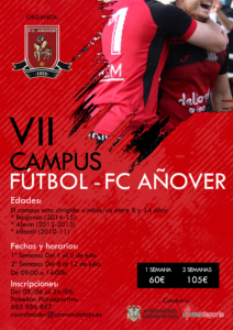 Organizado por el F.C. Añover con la colaboración del Ayuntamiento de Añover de Tajo se abre el plazo de inscripción para «VII Campus de Fútbol Base F.C. Añover»
