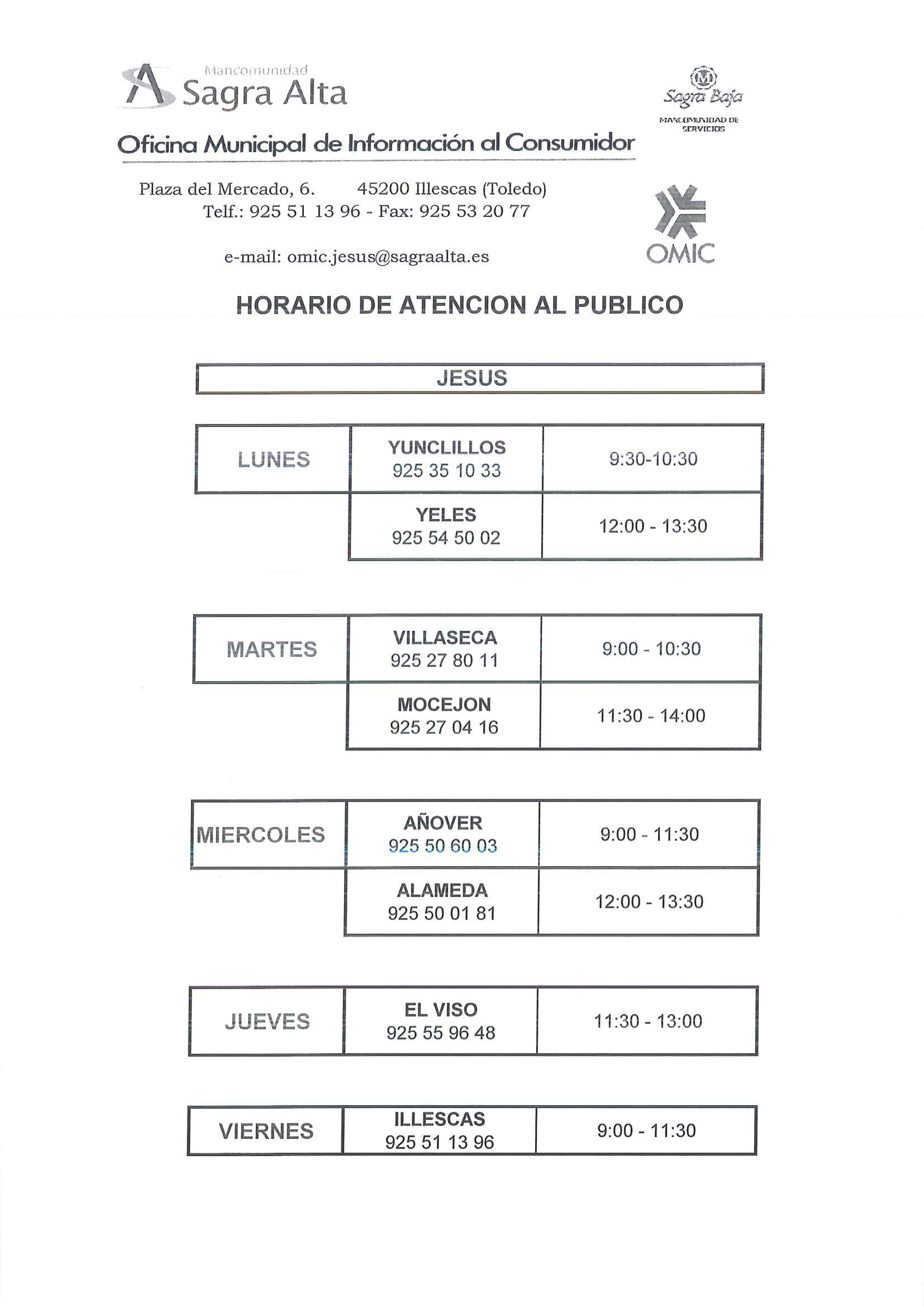 Los vecinos de Añover de Tajo, también serán atendidos en otros municipios de la zona por Jesús en diferentes días y horarios.