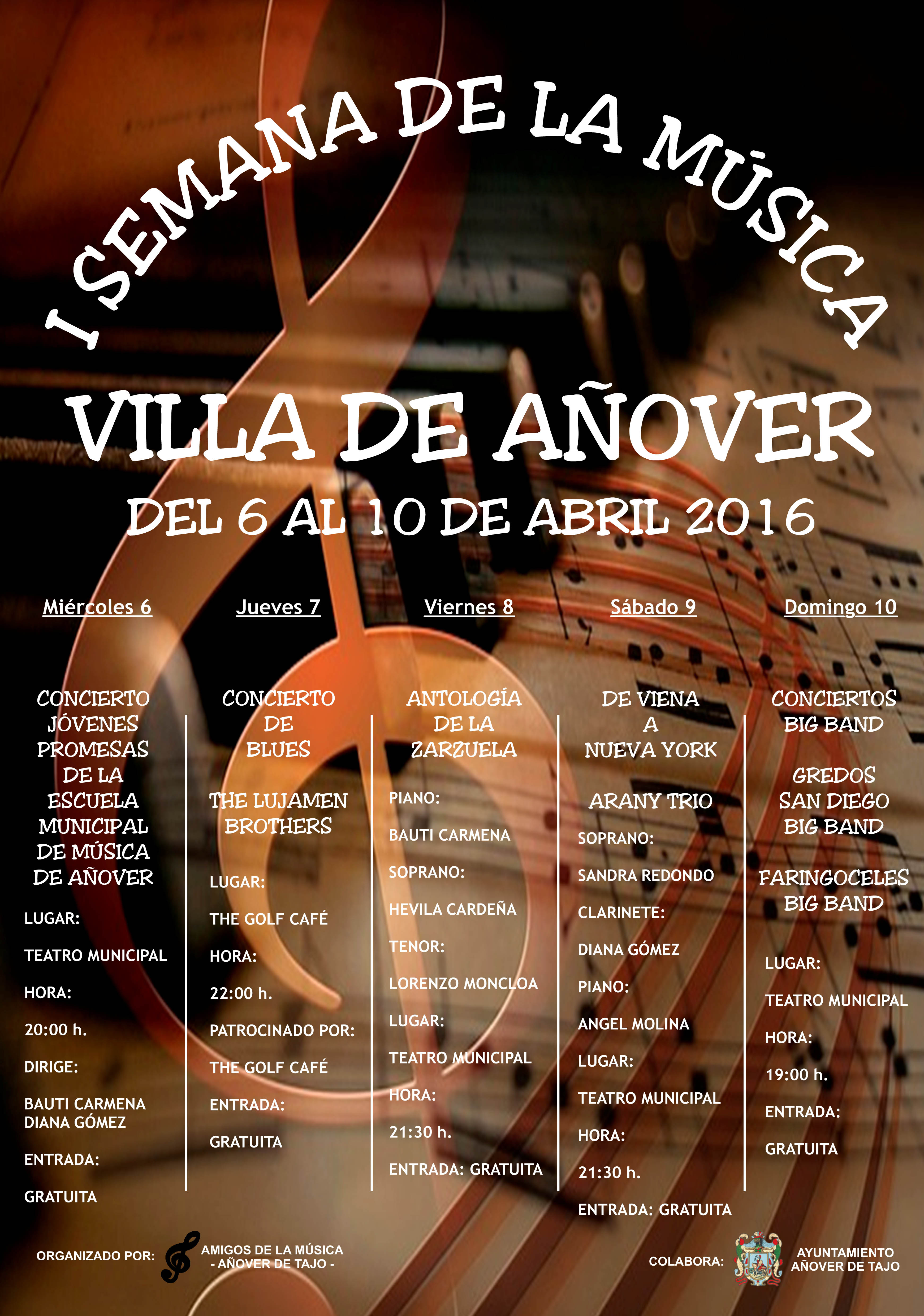 Semana intensamente musical en Añover de Tajo. Los amigos de la música organizan, con la colaboración del Ayuntamiento, la primera Semana de la Música con una serie de conciertos diarios y gratuitos.