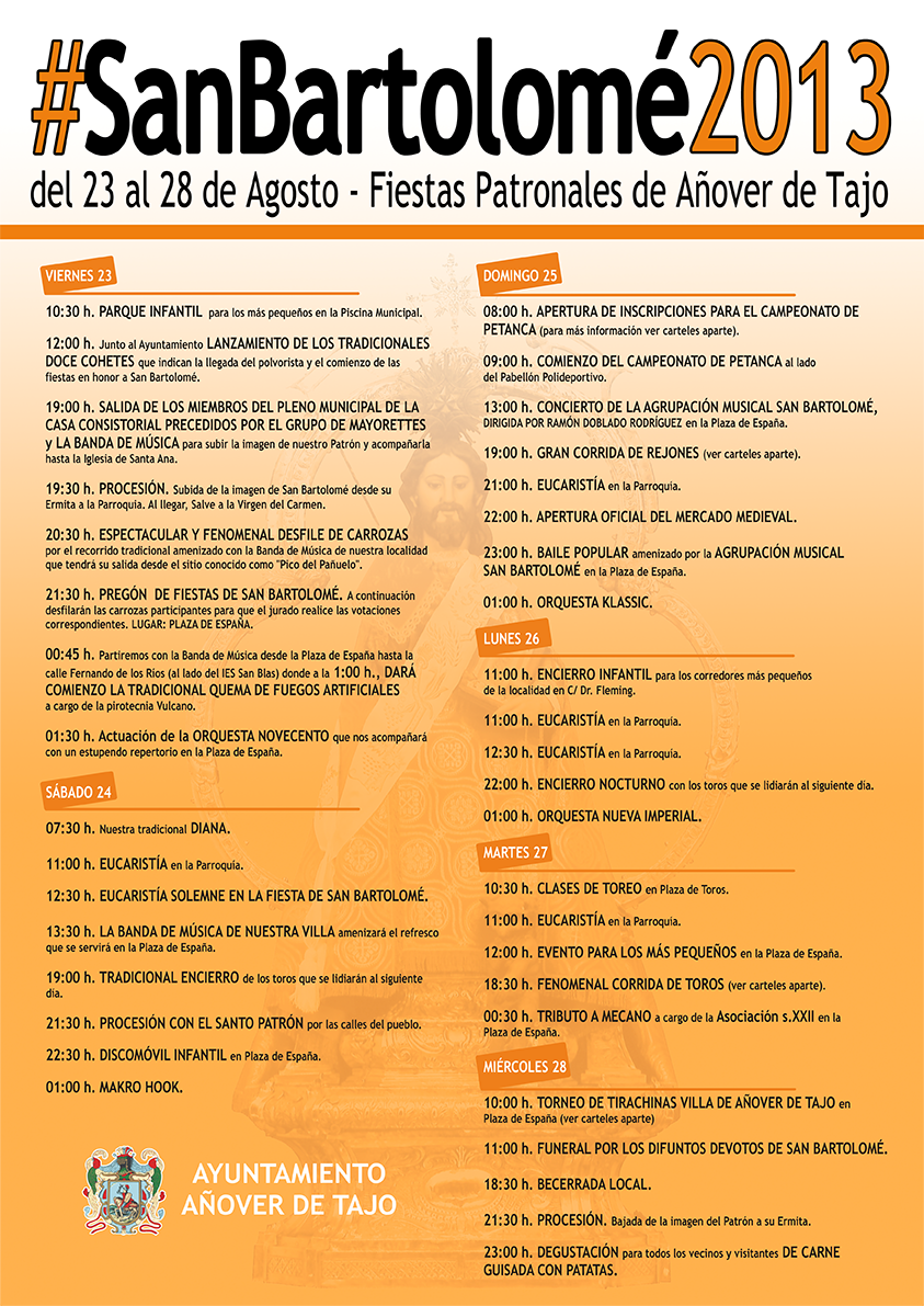 Ya está disponible el programa de las fiestas en honor a Nuestro Patrón San Bartolomé que se celebrarán del 23 al 28 de agosto.